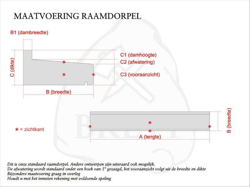 Voor de eenvoudige produkten hebben we standaard tekeningen gemaakt om u te helpen bij het opmeten. Let u er op dat u voldoende speling neemt.